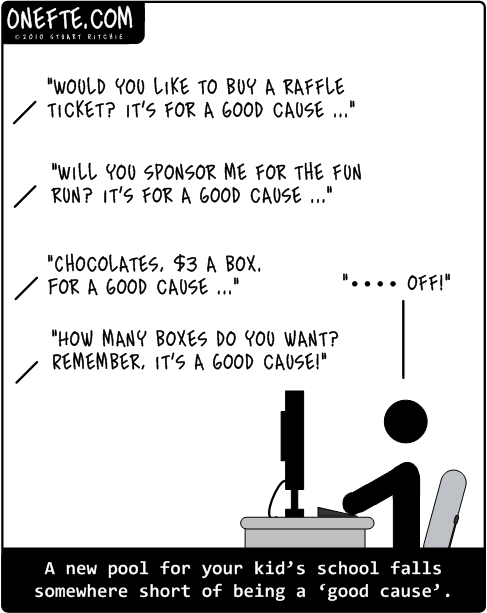 Closing caption: A new pool for your kid’s school falls somewhere short of being a ‘good cause’.