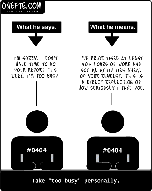 “Too busy” once or twice is life. Always “too busy” is a ranking.