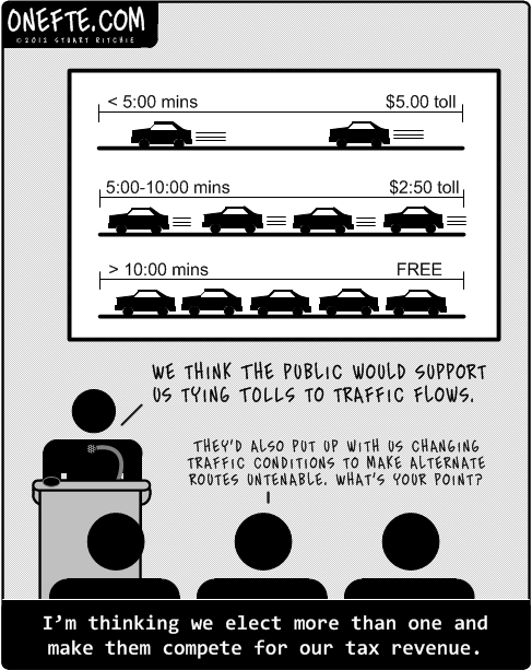 Let’s just put it on the record that I 100% solved toll-road traffic congestion (notwithstanding the obvious and material commercial issues with my plan).