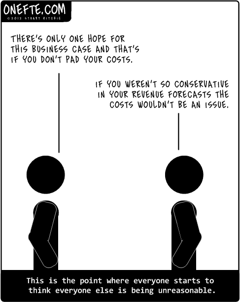 FTE #1: There’s only one hope for this business case, and that’s if you don’t pad your costs.