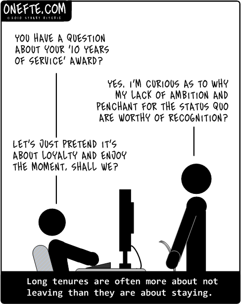 Caption: Long tenures are often more about not leaving than they are about staying.