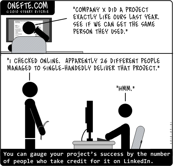 Caption: You can gauge your project’s success by the number of people who take credit for it on LinkedIn.