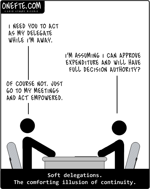 FTE #1: I need you to act as my delegate while I’m away.